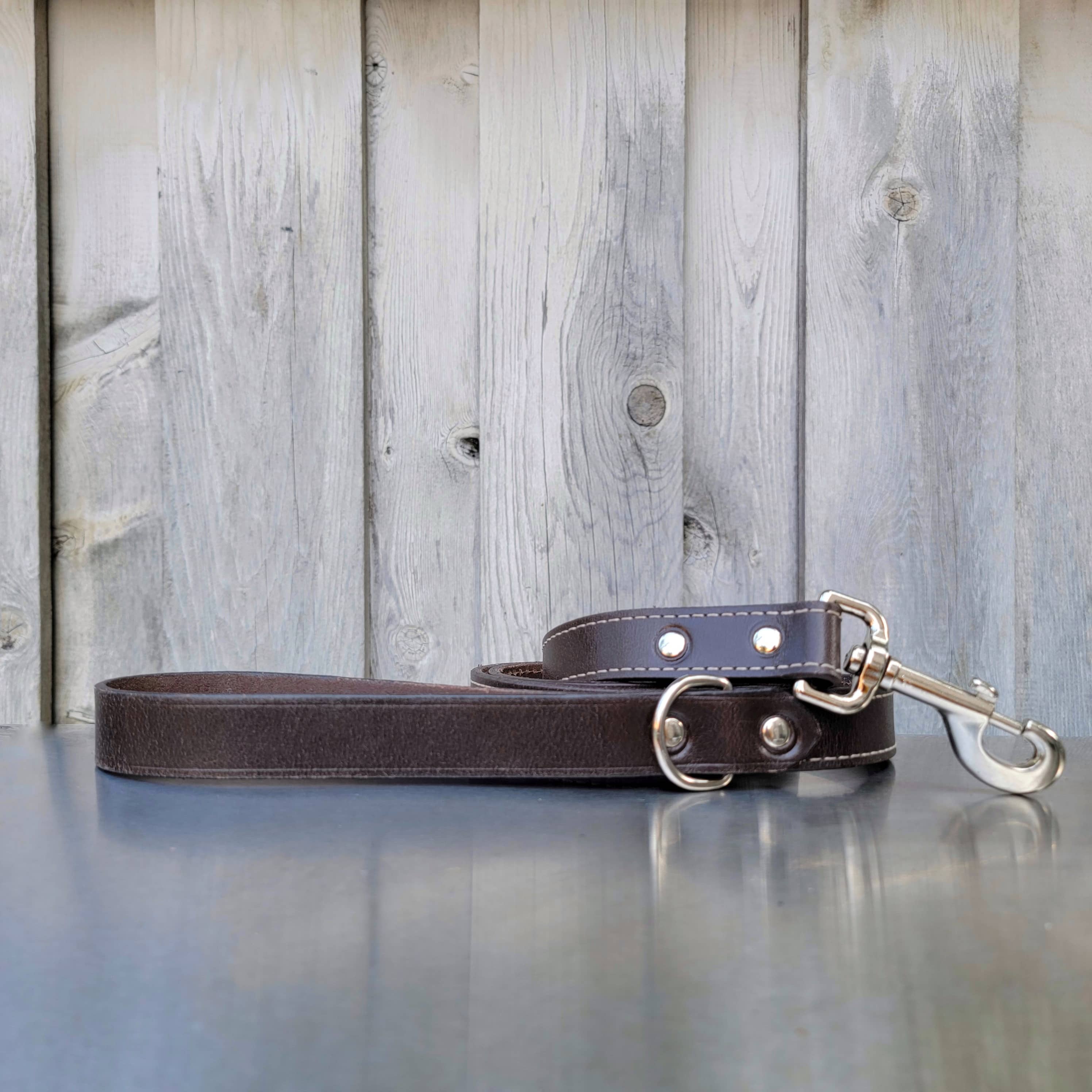 Brown Stitched Leather Dog Leash 60'' - Made in Canada