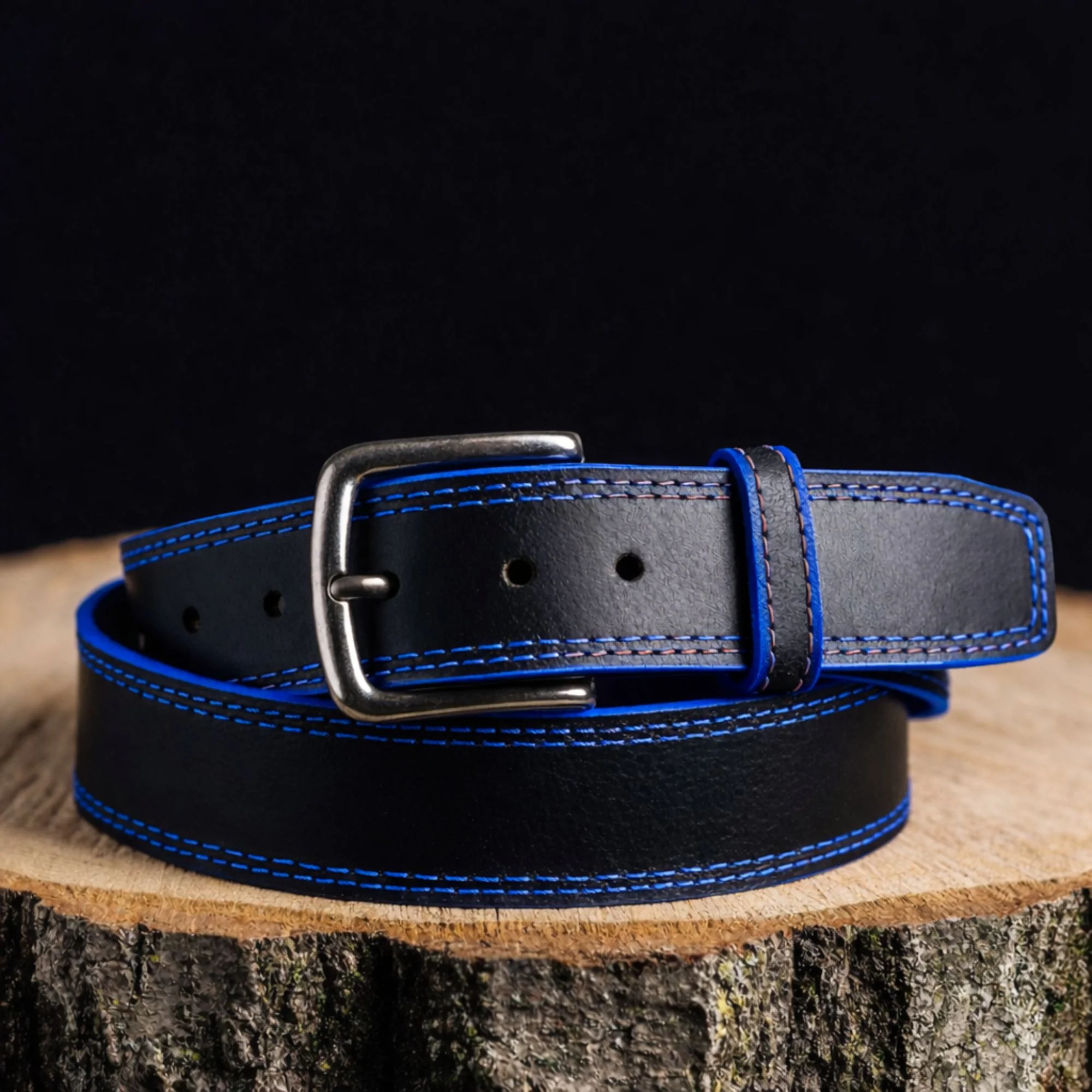 The Diablo Belt - Black Full Grain Leather Belt with Red Stitches