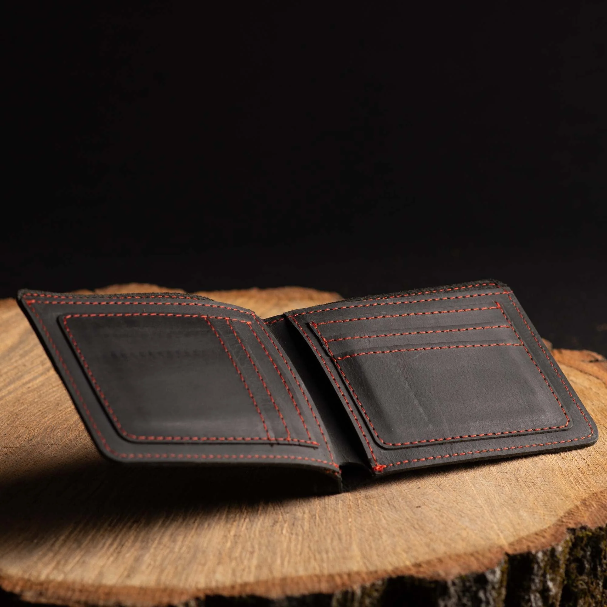 The Poseidon Wallet - Black Full-Grain Leather Wallet with Blue Stitching