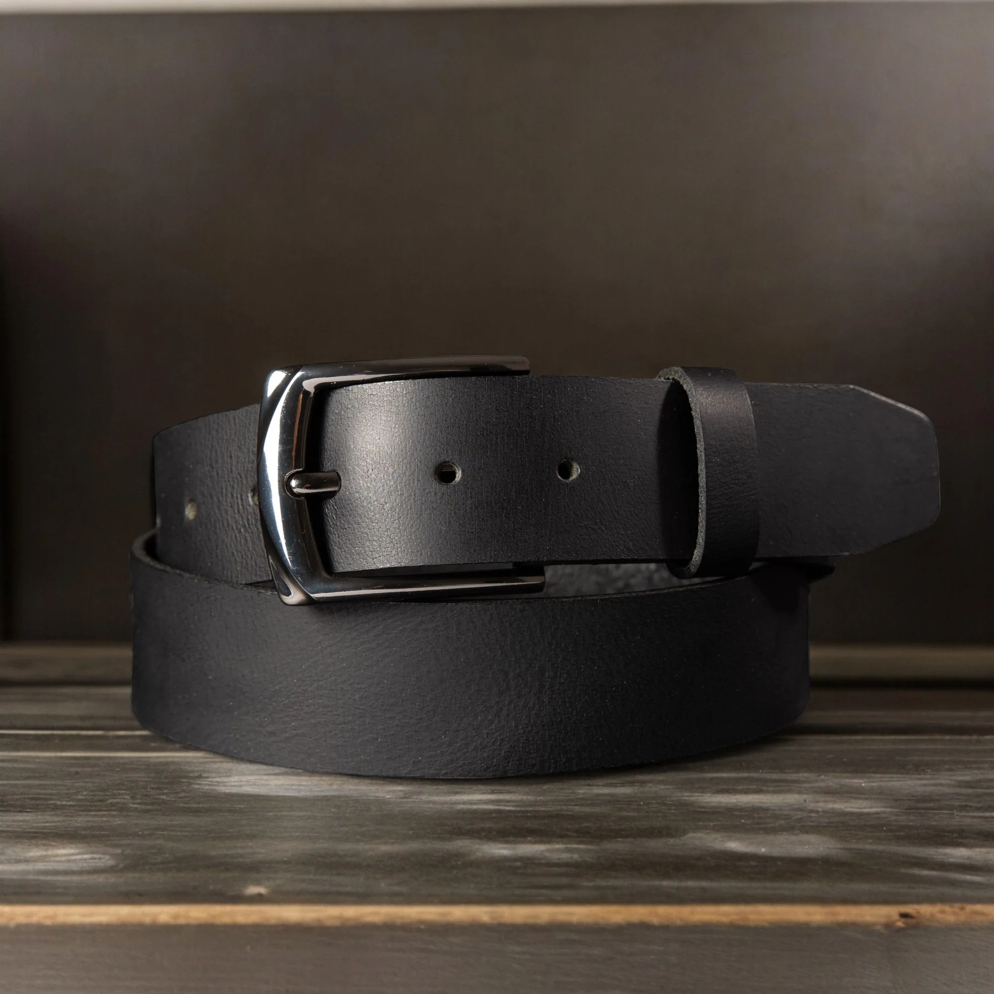 The PPK Belt - Black Leather Belt With Black Gunmetal Buckle