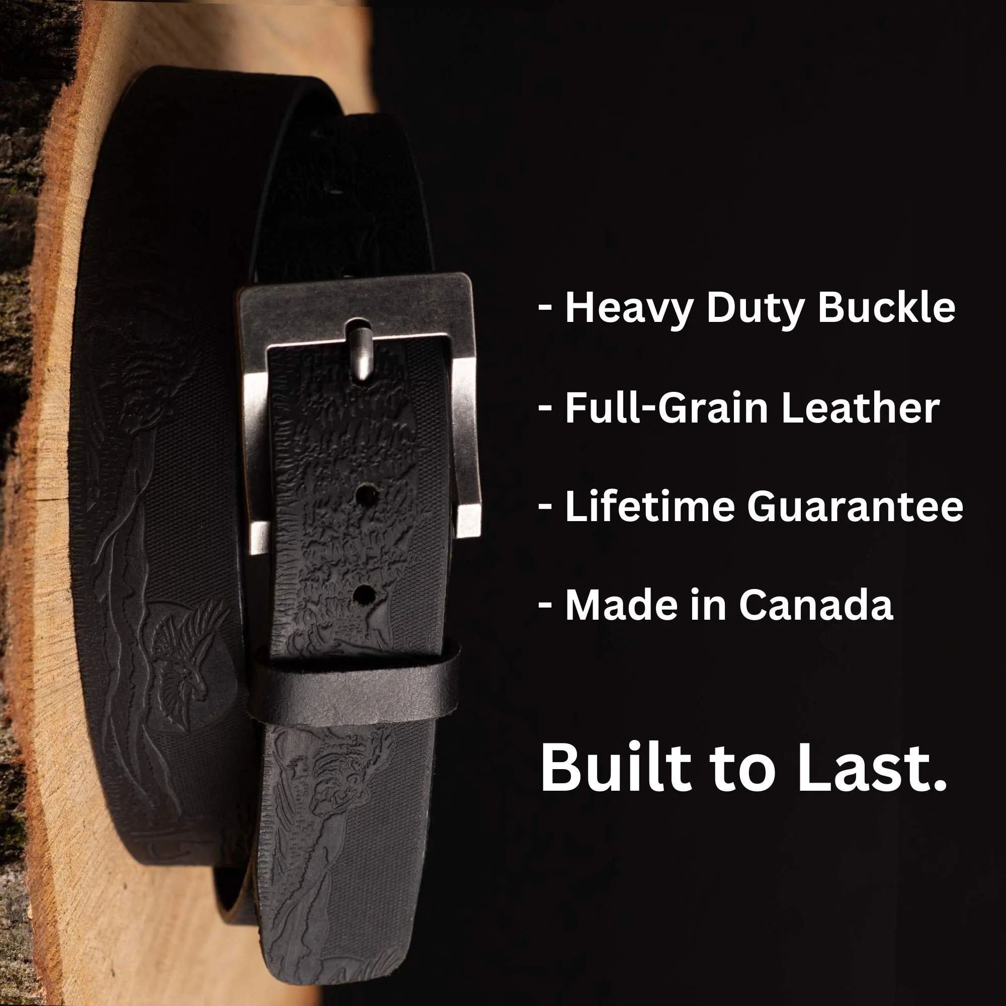 The Wildlife Belt - Black Embossed Full Grain Leather Belt Made in Canada
